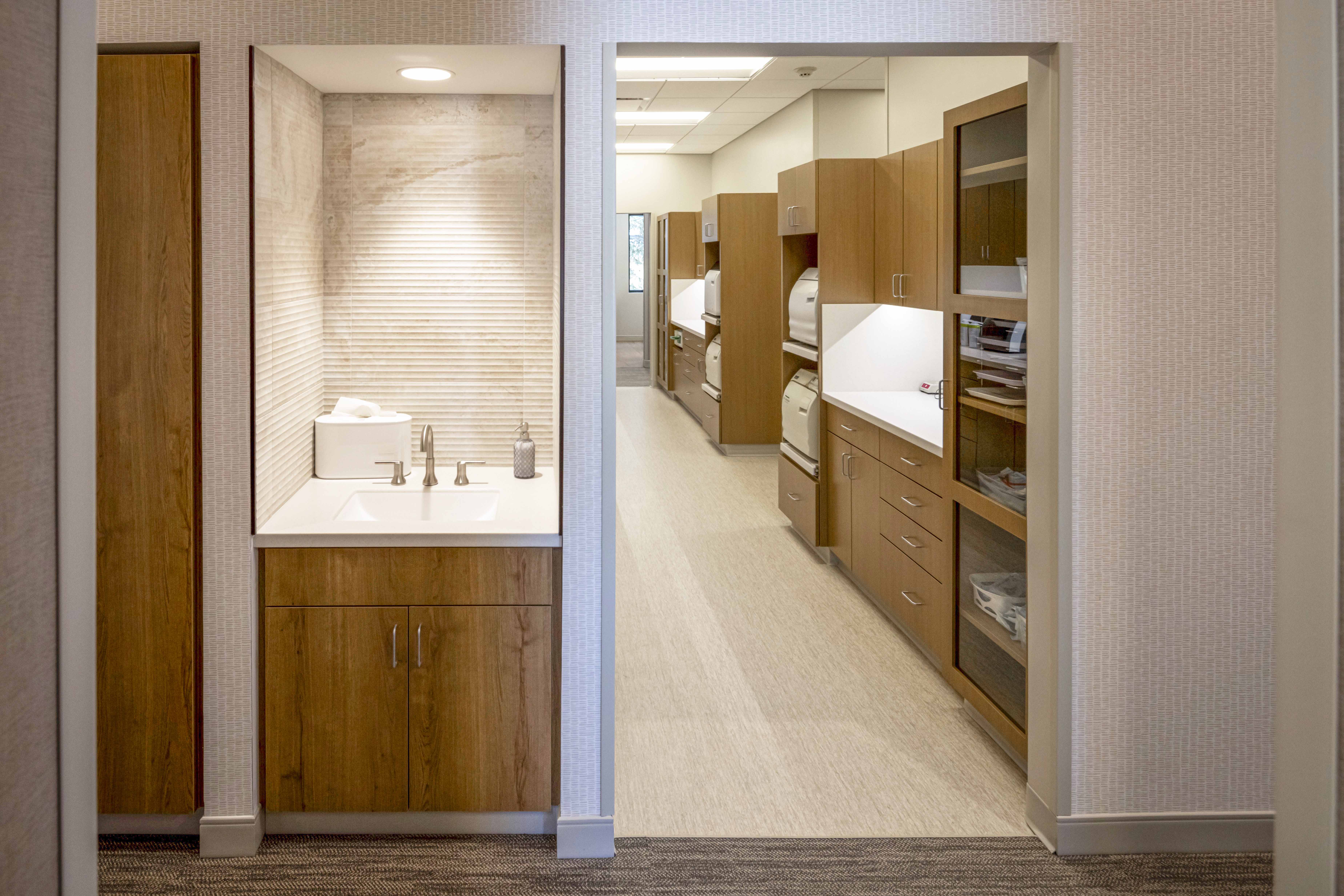 The single-story, slab on grade, wood framed clinic features 12 treatment rooms, sterilization center, lab, imaging room, and consultation office. A new staff lounge and patio aimed at enhancing amenities for staff will provide them with well-deserved space for breaks and collaboration.